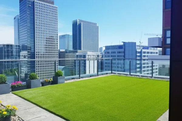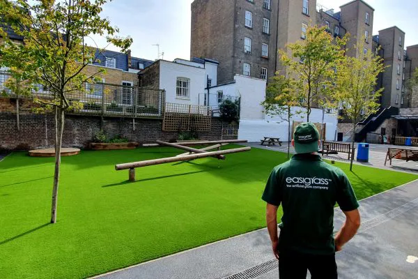Courtyards, roof terraces, balconies, swimming pools, children play areas; Easigrass commercial artificial grass range is durable, child and pet safe, wheelchair-friendly and continues to perform at the highest level.