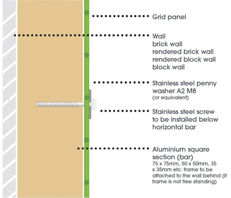 Solid timber frame Panel grid Washers Screw Timber joist Wall (unless standalone timber frame)