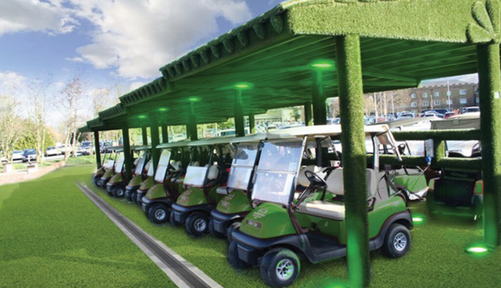 An award-winning Easigrass garden structure inspired the first of a kind golf buggy shelter installation at a premier resort in the North East of England. Ramside Hall Hotel, Golf and Spa commissioned Easigrass to create a design based on the Easi-Gazebee to provide year-round shelter for its fleet of 36 golf buggies that would also complement and blend in with its grand and green grounds.